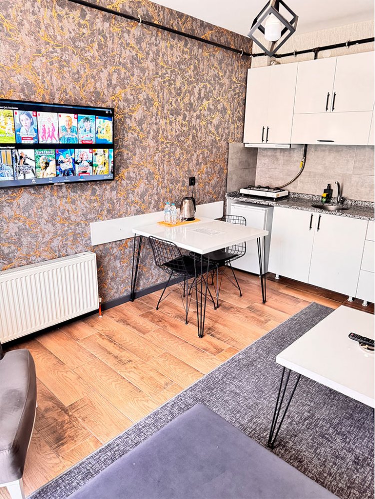 Odalarımızda yer alan televizyonda Beinconnect, Netflix, Exxen, Youtube gibi platformları tamamen ücretsiz bir şekilde kullanabilirsiniz. Standart odalarda kaldığınız süre boyunca mutfağınızda kendi yemeğinizi pişirerek yemek masraflarınızı en minimum seviyeye düşürebilirsiniz.